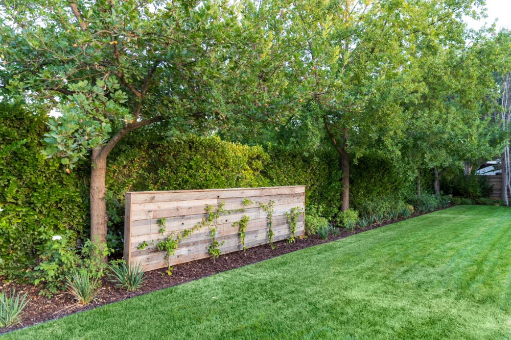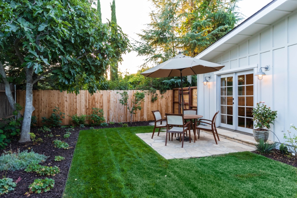 The fencing layout also required thoughtful coordination. The front yard fence was built horizontally and later painted a gray tone to complement the home. The fence along the neighboring property line was installed vertically to match the neighbor’s existing fencing as a courtesy, allowing everything to blend seamlessly.