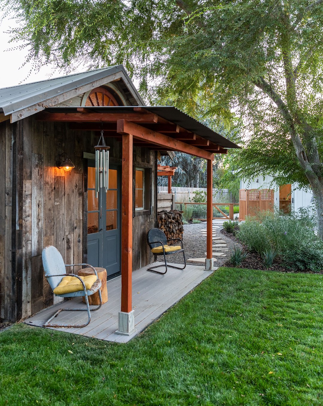 - FX Luminaire lighting, grape vines from Farm Supply, gravel from Airvol Block, sod from SiteOne Landscape Supply, and plants from Mesa Grande Nursery.